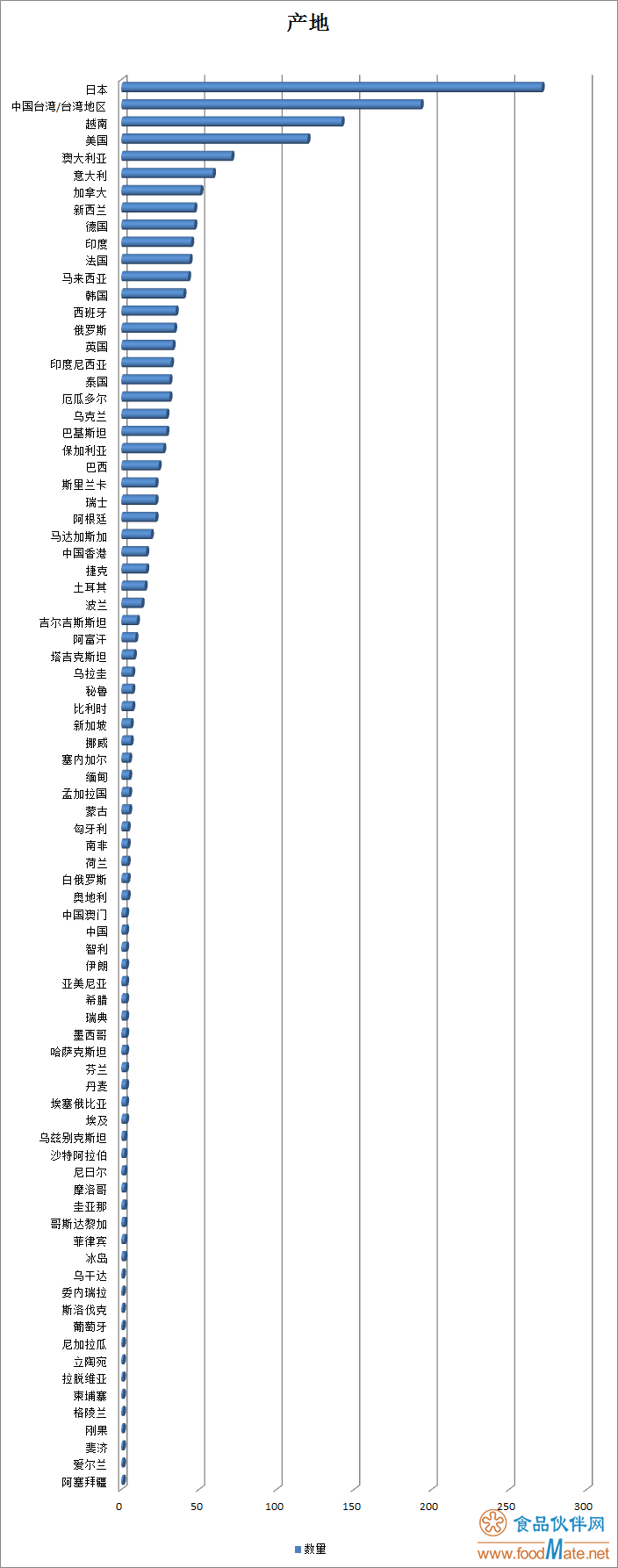 統(tǒng)計顯示,這些未準入境食品來自八十多個國家或地區(qū),其中,日本、臺灣地區(qū)、越南、美國位居前四。