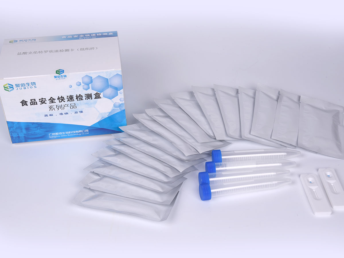 本產(chǎn)品不需要任何儀器,用于檢測(cè)動(dòng)物組織中鹽酸克倫特羅殘留,整個(gè)檢測(cè)過(guò)程只需要5-10min左右,檢出限為3 ng/mL(3 ppb)。